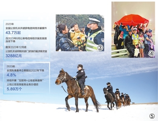 圖③:河北邯鄲市永年區(qū)警民互動(dòng)活動(dòng)中,小朋友向警察敬禮。胡高雷攝(影像中國(guó))圖④:重慶市公安局江北區(qū)分局交巡警支隊(duì)輔警夏英柯在執(zhí)勤中偶遇暴雨,與市民、游客一同避雨。重慶市公安局江北區(qū)分局供圖圖⑤:內(nèi)蒙古出入境邊防檢查總站錫林郭勒邊境管理支隊(duì)“馬背警隊(duì)”正在開(kāi)展巡邏踏查。格日勒朝克圖攝(人民視覺(jué))
