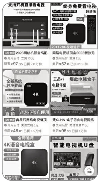 購物平臺上出售的網(wǎng)絡(luò)電視機頂盒種類很多。
