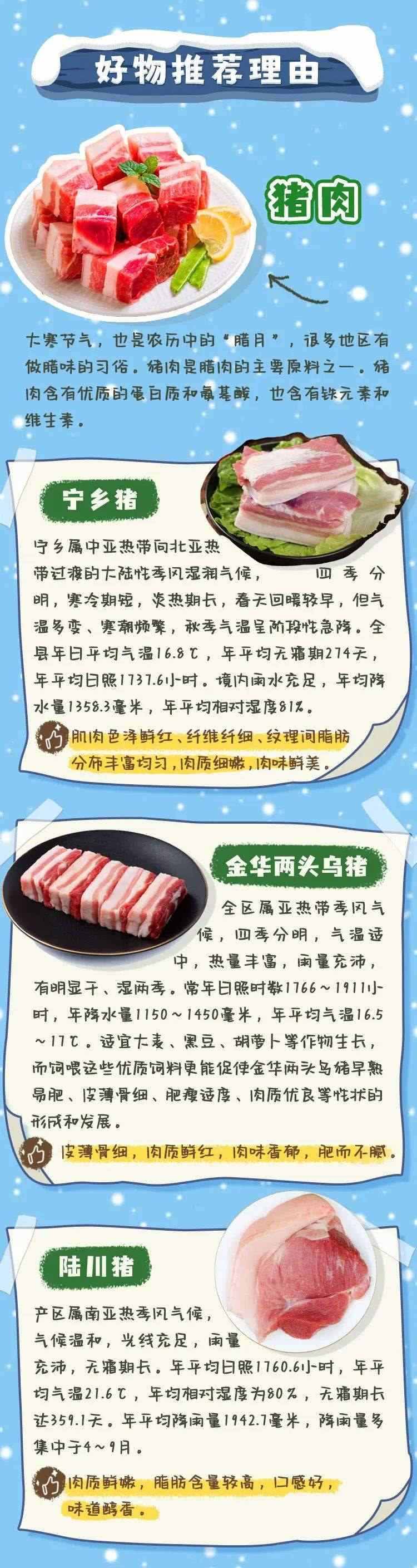 大寒節(jié)氣除了吃糯米飯外,還有一個(gè)習(xí)俗就是做臘肉、吃臘肉?!岸D風(fēng)腌,蓄以御冬”,這個(gè)時(shí)節(jié),最適合風(fēng)干制作臘味。豬肉,是臘肉的主要原材料之一。我國(guó)的養(yǎng)豬史,最早可以追溯到新石器時(shí)代,目前豬肉產(chǎn)區(qū)可以說是遍布全國(guó),不同地區(qū)的豬肉也有不同的特色和風(fēng)味。