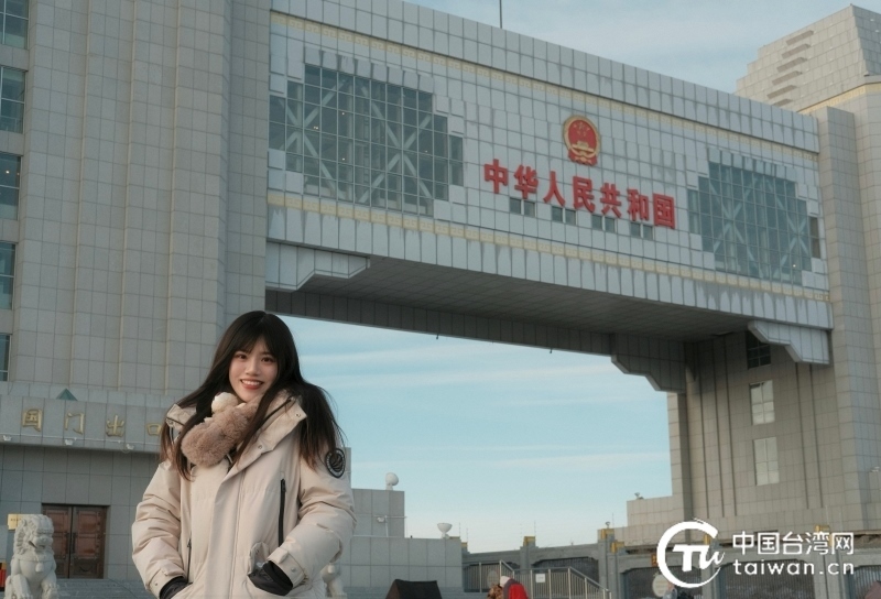 1月27日,2024年全國(guó)臺(tái)聯(lián)第三十屆臺(tái)胞青年冬令營(yíng)內(nèi)蒙古分營(yíng)一行人前往中俄第五代國(guó)門參訪,陳紀(jì)陵于中俄第五代國(guó)門前“打卡”留念。(臺(tái)灣同學(xué) 王奕勛 攝)