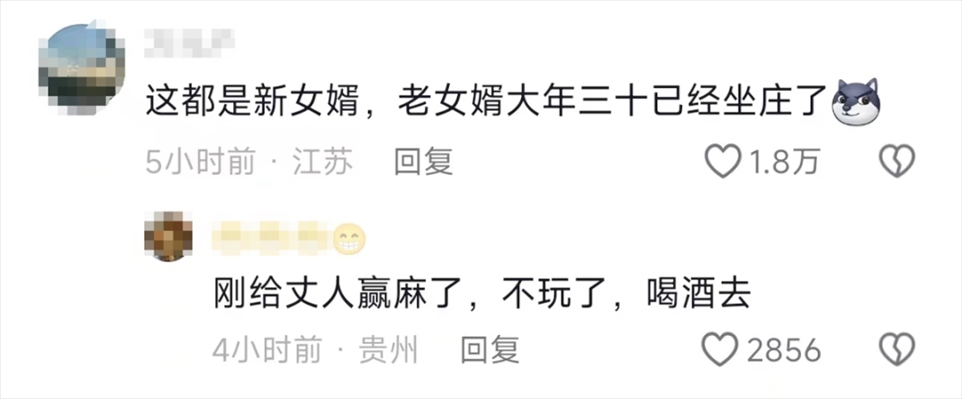 不過,網(wǎng)友們指出,這些顯得格格不入的都是新女婿,老女婿大年三十已經(jīng)坐莊了,懂事的女婿還讓丈人贏錢了。