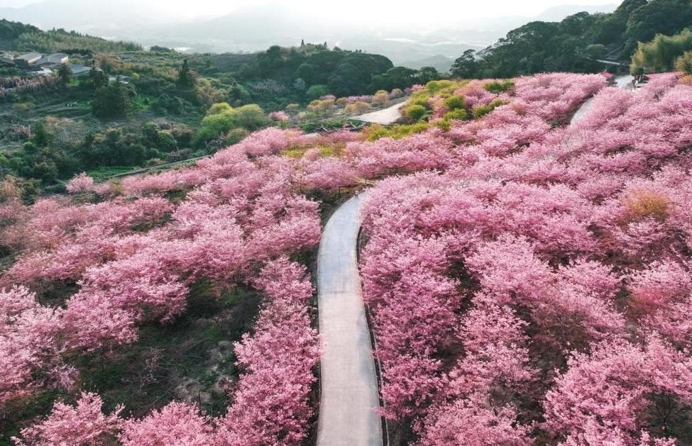 福建龍巖,仁隔山櫻花盛開,漫山遍野如云似霞。