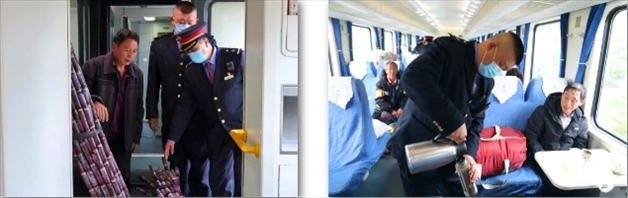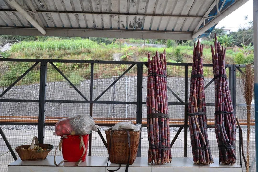 3月2日一大早,小小的茅草坪站就坐滿了背著農(nóng)產(chǎn)品前來乘坐“慢火車”的群眾。蔗農(nóng)李進賢準備從茅草坪站乘坐6081次慢火車給在松河的客戶送甘蔗。