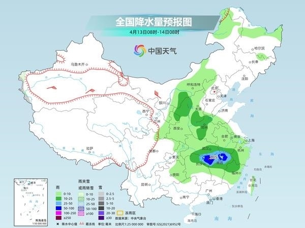 其中今天,內(nèi)蒙古東北部、新疆北疆東部和沿天山地區(qū)、西藏北部、西北地區(qū)中部等地部分地區(qū)有小到中雪或雨夾雪,其中,新疆北疆北部和北疆東部等地部分地區(qū)有大到暴雪,局地大暴雪。內(nèi)蒙古東北部、東北地區(qū)東部和北部、新疆北部、西藏東南部、江淮大部、江南、西南地區(qū)東部、華南北部、臺灣島等地部分地區(qū)有小到中雨,其中,江西南部、福建南部等地部分地區(qū)有大雨。