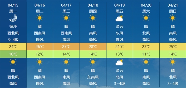 根據(jù)氣象部門預(yù)報,本周天氣以晴和多云為主,氣溫總體回升,周四白天最高氣溫預(yù)計將達(dá)到28℃。天氣條件總體適宜出行,晝夜溫差仍較大,還需注意適時增減衣物,謹(jǐn)防感冒。