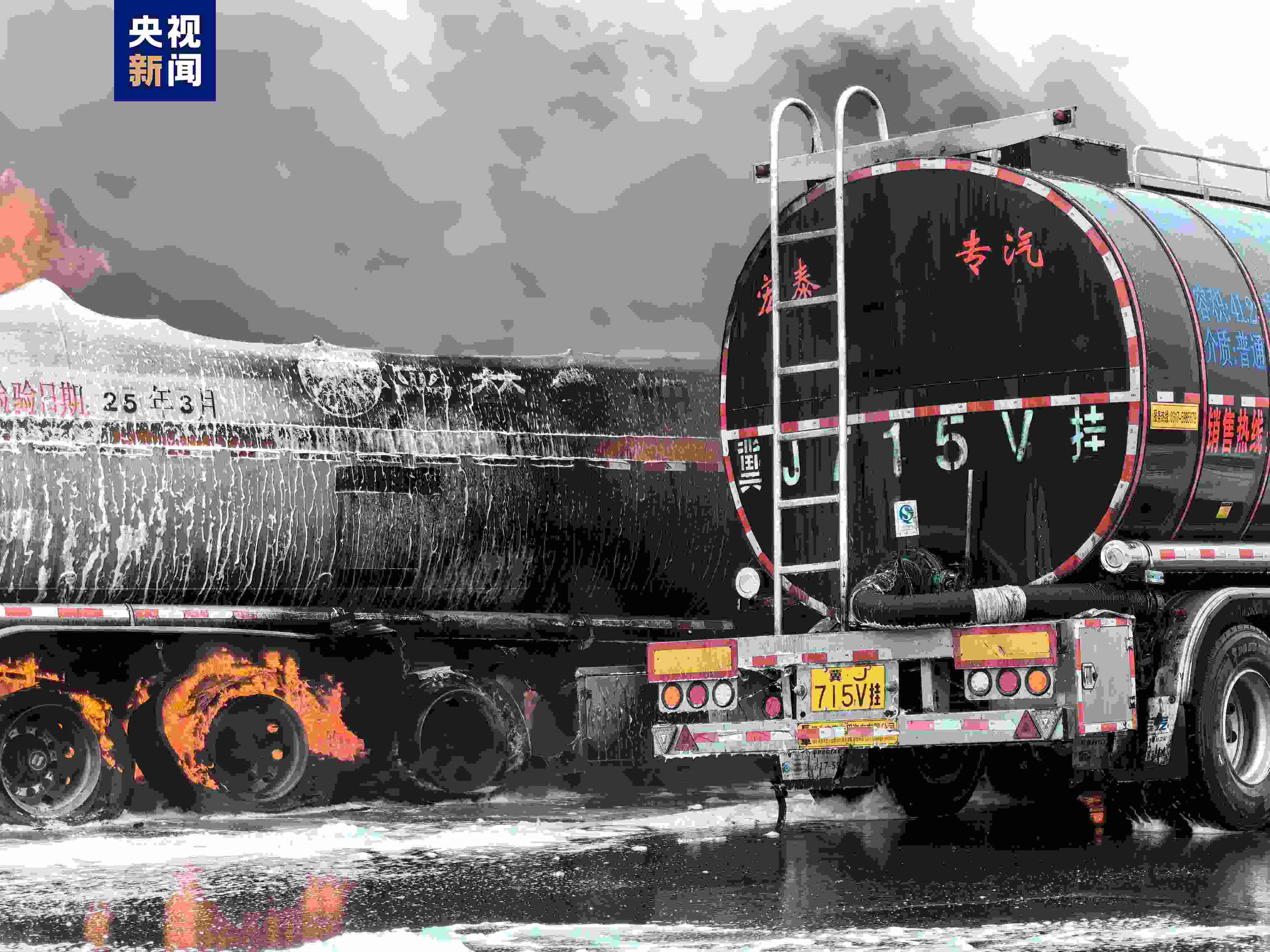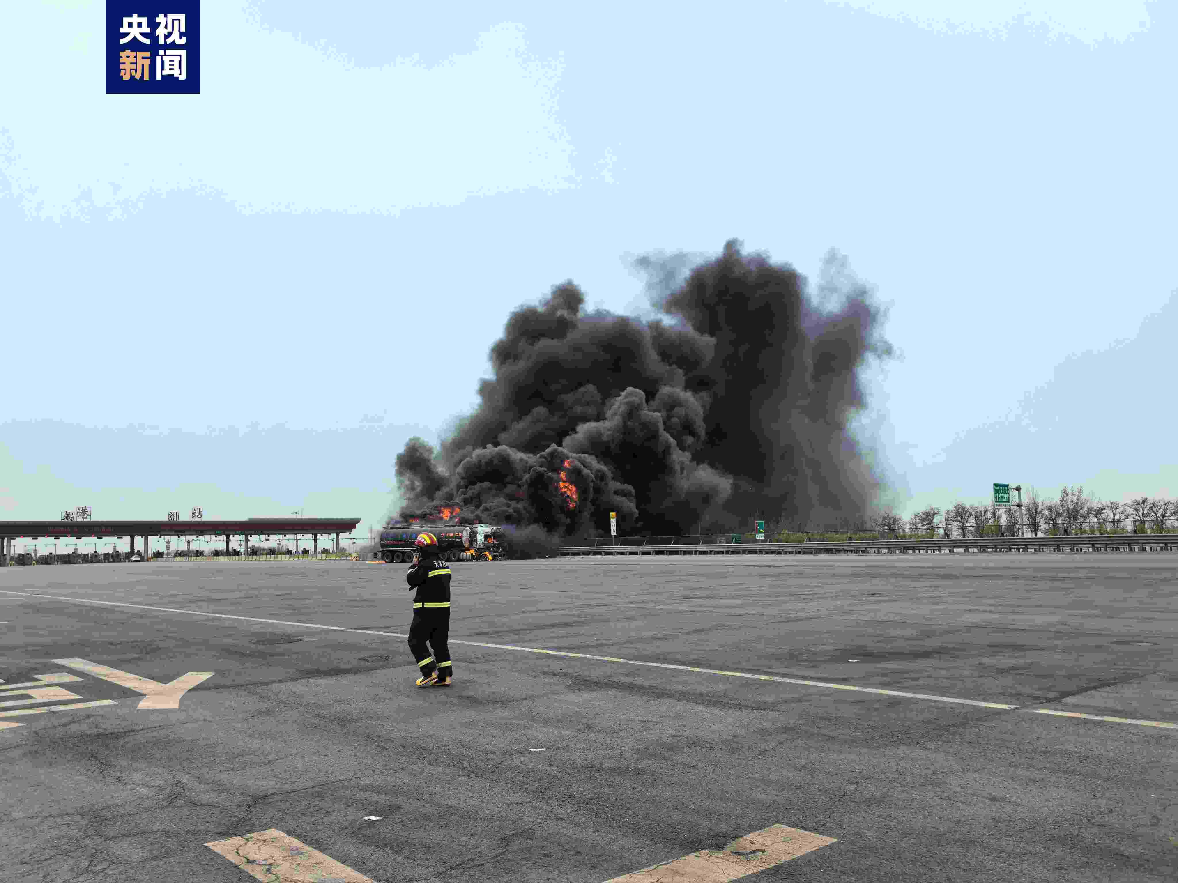 今天(19日)上午,天津市濱海新區(qū)秦濱高速臨港收費站出口有兩輛罐車發(fā)生交通事故后起火。經(jīng)偵察,現(xiàn)場為一輛載有潤滑油的罐車與一輛載有柴油的罐車相撞,造成兩輛罐車起火。