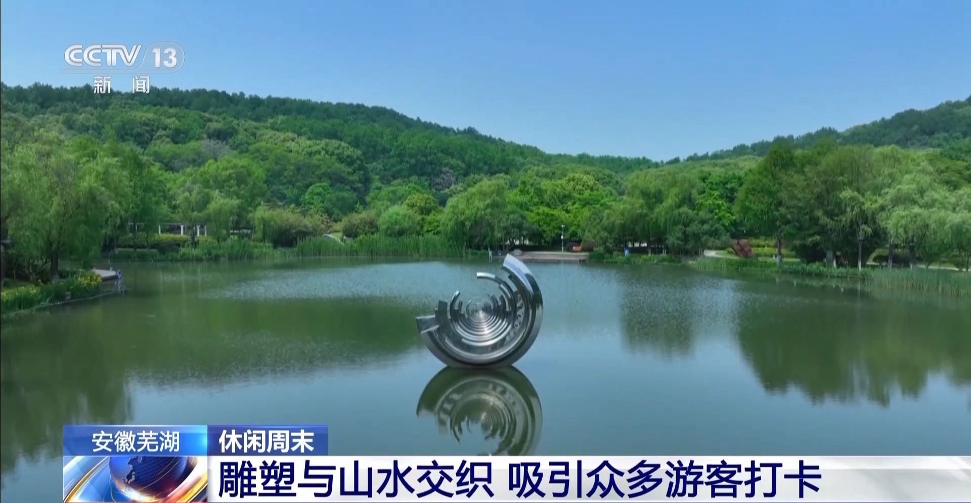 雕塑與山水交織 吸引眾多游客打卡