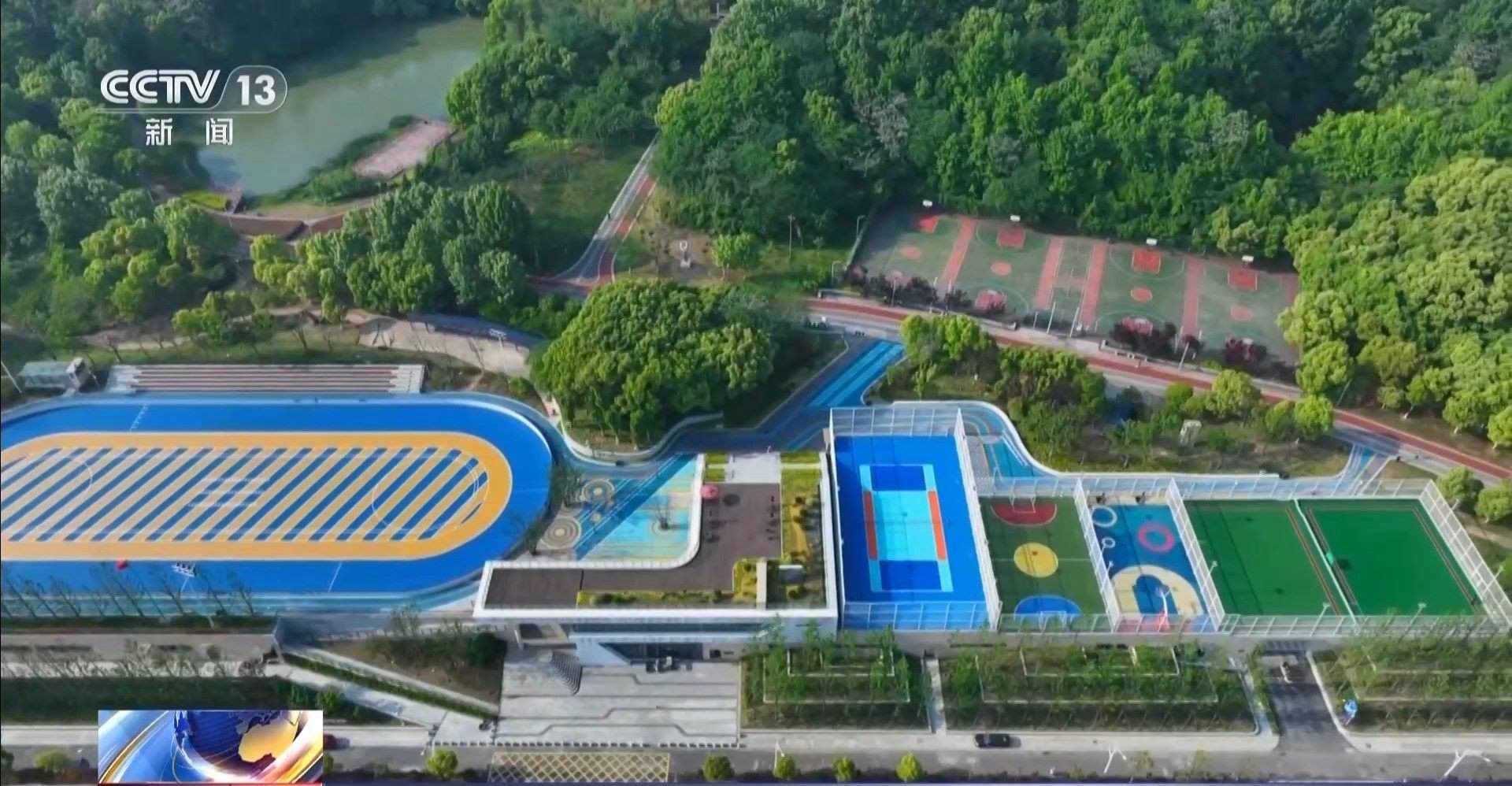 除此之外,圍繞著整個公園自然山體的外側,還鋪設了紅色的塑膠跑道,公園的東南角還有籃球場、足球場、運動廣場,滿足市民的健身需求。