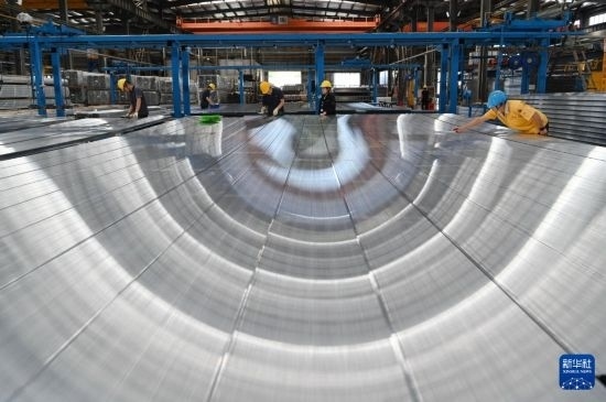 5月1日,位于河南省沁陽市的廣東興發(fā)鋁業(yè)(河南)有限公司擠壓車間,工人在生產(chǎn)線上工作。