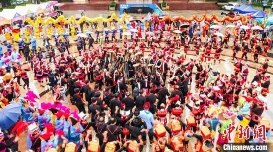 開幕式上,當?shù)噩幾迕癖娨愿挥忻褡逄厣母栉?、瑤服服飾走秀等表演迎接來自四面八方的賓客。