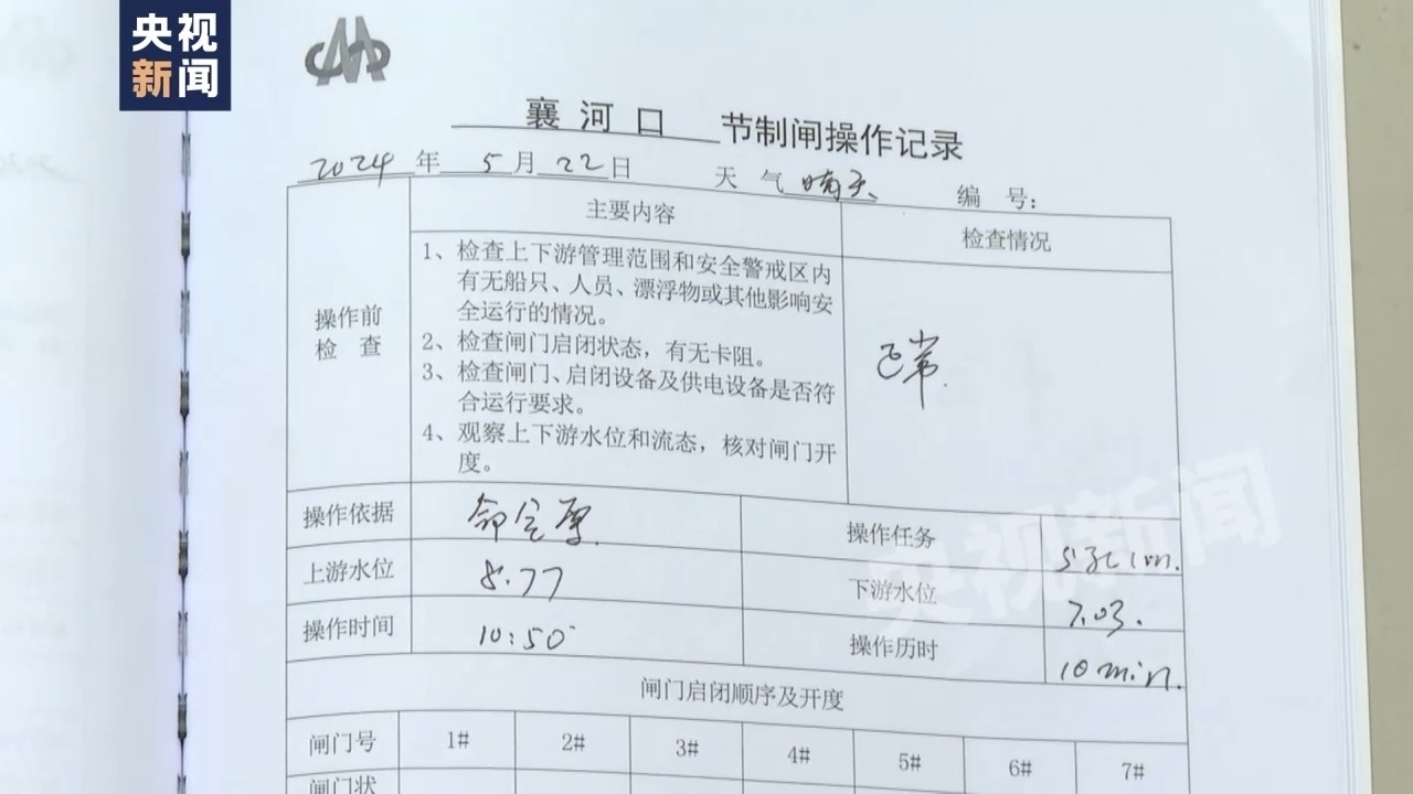 記者在安徽省駟馬山引江工程襄河口閘管理所的節(jié)制閘操作記錄本上看見,發(fā)現(xiàn)在5月18日上午,這里的節(jié)制閘原本已處于完全關(guān)閉狀態(tài)。然而在發(fā)現(xiàn)水體污染的兩天后,5月22日上午10點50分,襄河口七孔節(jié)制閘中的五孔開閘,在閘前聚集兩天的污水一路暢通地進入滁河。這一次放水直至5月23日15點50分結(jié)束,時間長達29個小時。