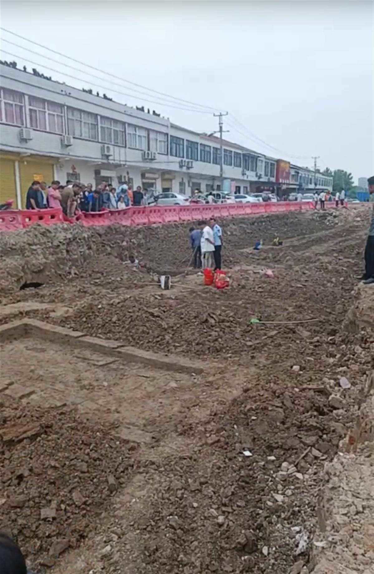 網(wǎng)友發(fā)布的視頻顯示,在壽縣炎劉鎮(zhèn)廣巖衛(wèi)生院附近的一處修路的工地上,施工人員在作業(yè)過程中發(fā)現(xiàn)了一個古墓群,目前確定有6座古墓。目前,當(dāng)?shù)乜脊殴ぷ髡咭呀?jīng)趕到現(xiàn)場處置,民警對現(xiàn)場進行了管制。視頻中,現(xiàn)場被警戒線圍起,多名群眾在附近圍觀。
