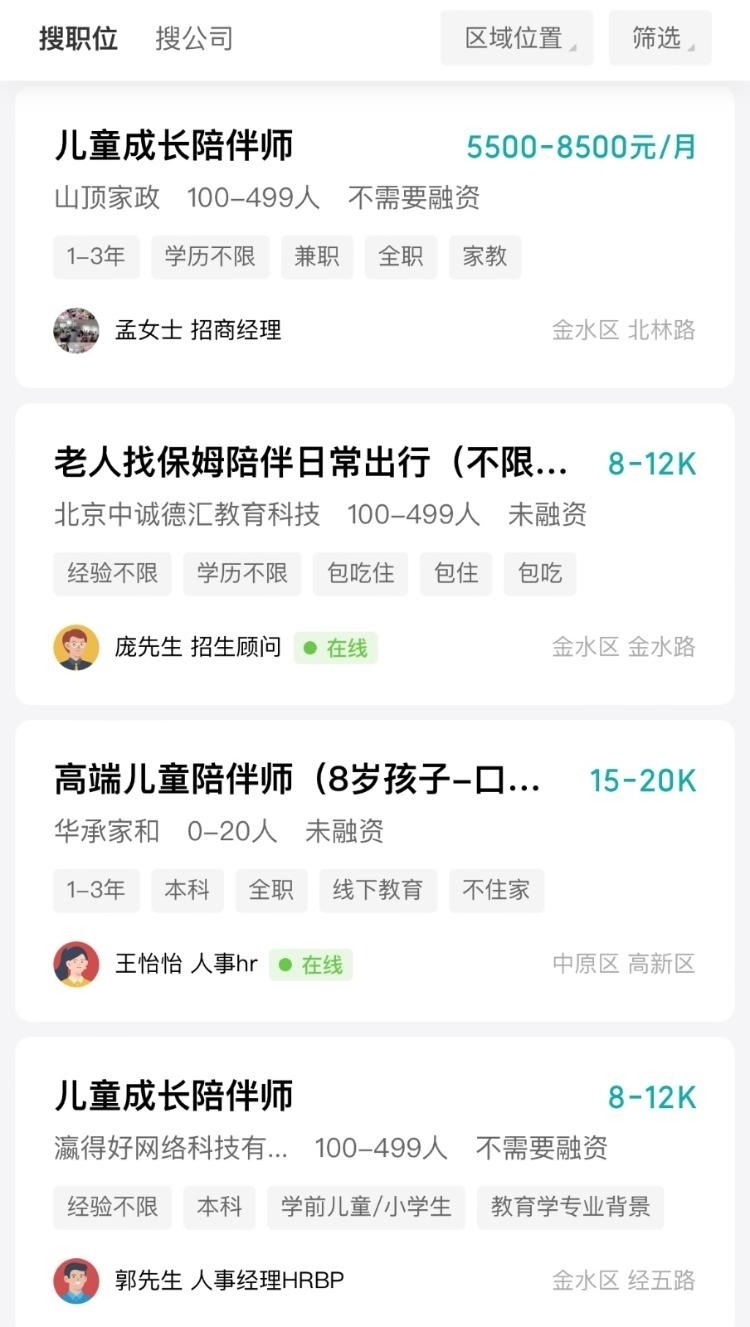 除了社交平臺(tái),記者在某招聘平臺(tái)上發(fā)現(xiàn),招聘兒童成長(zhǎng)陪伴師的帖子不在少數(shù),招聘方有些是家政公司,有些是中介機(jī)構(gòu),薪資從五千到四萬(wàn)元不等。據(jù)了解,中介機(jī)構(gòu)給出的薪酬標(biāo)準(zhǔn)較為隨意,并且不繳納社保,有些還要收取第一個(gè)月工資20%的“中介抽成”。