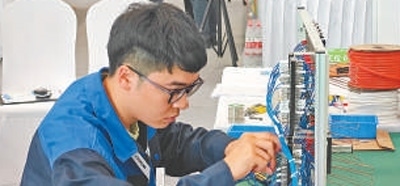 手持記號筆,目光如炬,只見軌道信號控制技術項目選手陳權(見圖,本報記者蔣雨師攝)在電路圖里精準鎖定電路,將一個個接點逐一填入配線表,動作行云流水,一氣呵成。在大賽現(xiàn)場,軌道信號控制技術項目選手需要完成軌道信號設備的設計、施工、調(diào)試與檢修工作。就設計環(huán)節(jié)而言,選手們需要把上百條電路信號的轉轍機電路設計圖轉換為電路配線表,但凡有一個接點錯誤,整個電路都將出現(xiàn)問題,而這一環(huán)節(jié),陳權只花了10分鐘。