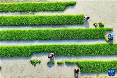 “三夏”時(shí)節(jié),綿陽市安州區(qū)秀水鎮(zhèn)石紅村一派忙碌景象。插秧機(jī)在田間穿梭,村民周啟軍忙著補(bǔ)栽秧苗?!白罱疃啵凑铡?jīng)紀(jì)公司’安排,除了農(nóng)忙插秧,下個(gè)月還得安裝路燈、修補(bǔ)堰塘?!崩现苷f。