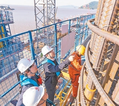 西堠門公鐵兩用大橋墩身施工現場。弋鵬麗攝
