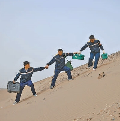 班組成員在翻越沙丘。以上圖片均為高鑫攝