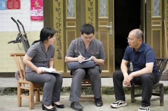 法官向駐村工作隊(duì)隊(duì)長(zhǎng)了解情況。