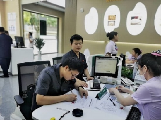 萬年法院法官在一家商業(yè)銀行辦理執(zhí)行手續(xù)。李博 攝