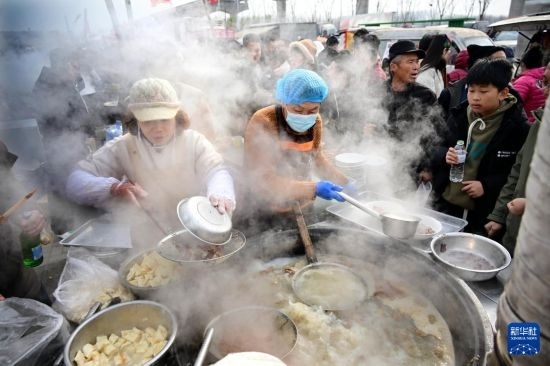 1月18日,泊里大集一個(gè)羊肉湯攤位前排起長隊(duì)。