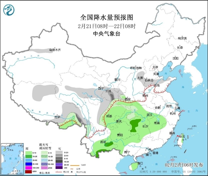 人民網(wǎng)北京2月21日電 (溫璐、高清揚)據(jù)中央氣象臺消息,昨日,降雨主要出現(xiàn)在江南地區(qū),其中湖南中南部、江西、安徽南部、浙江、福建西部和北部、廣西北部、臺灣島北部等地有中到大雨,局地暴雨。預計21日至25日,江南、華南、江漢及西南地區(qū)等地仍多陰雨天氣,北方大部地區(qū)天氣晴好,西北地區(qū)東南部、華北南部、東北地區(qū)東北部等地有弱降雪。