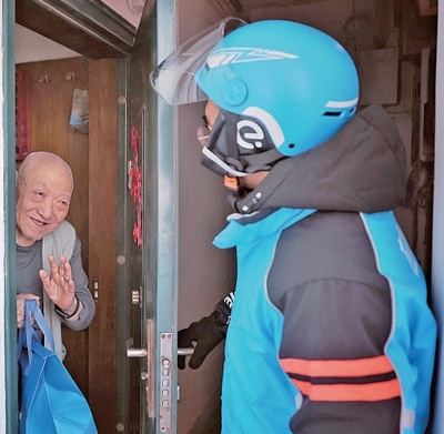 “今天上午風(fēng)挺大,氣溫也比較低,盡量穿厚點(diǎn),手套、帽子、圍脖等都配齊,防風(fēng)御寒效果會(huì)好些?!币辉?,記者就收到外賣(mài)平臺(tái)騎手馬志鵬發(fā)來(lái)的提示信息。按照計(jì)劃,記者當(dāng)天將跟隨這位年輕騎手給社區(qū)老人送餐。
