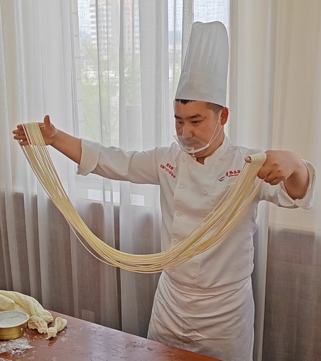 來(lái)自青海省本地的拉面師傅還在現(xiàn)場(chǎng)展示了拉面技術(shù)。據(jù)了解,拉面是4000多年來(lái)中華民族對(duì)美食的探索和傳承的結(jié)晶。2002年,在青海省海東市民和回族土族自治縣的喇家遺址中發(fā)現(xiàn)了距今4000多年前的一根面條,是迄今為止發(fā)現(xiàn)的世界上最古老的面條,被稱作“世界第一面”,也說(shuō)明中國(guó)是面條的發(fā)源地。