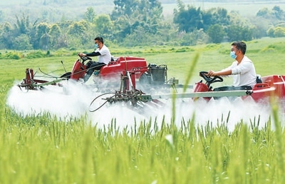 四川成都市雙流區(qū)黃水鎮(zhèn),95后新農(nóng)人對小麥進行植保作業(yè)。