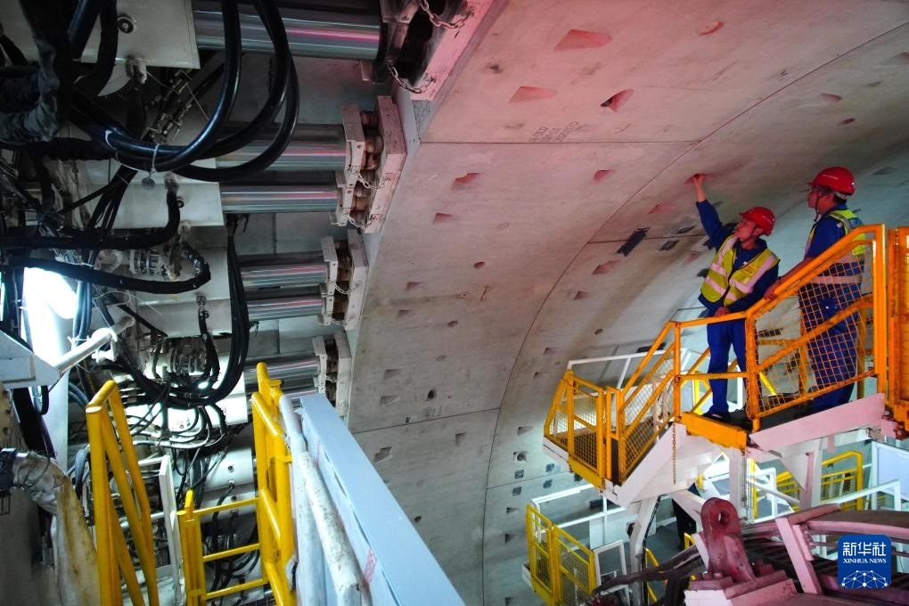 5月9日,中鐵十四局技術(shù)人員在“啟航號”盾構(gòu)機(jī)內(nèi)巡查。