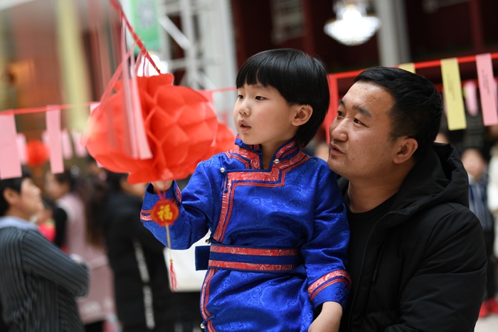 2月17日,市民在內(nèi)蒙古圖書館猜燈謎。當(dāng)日,為慶祝我國傳統(tǒng)節(jié)日元宵節(jié),內(nèi)蒙古圖書館舉行“書香慶元宵”主題活動,現(xiàn)場共準(zhǔn)備了蒙漢文燈謎1300余 條,通過 猜燈 謎、繪花 燈、包元宵等活動,讓參與者樂在其中,體驗傳統(tǒng)節(jié)日習(xí)俗。