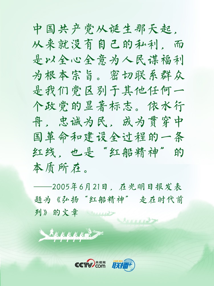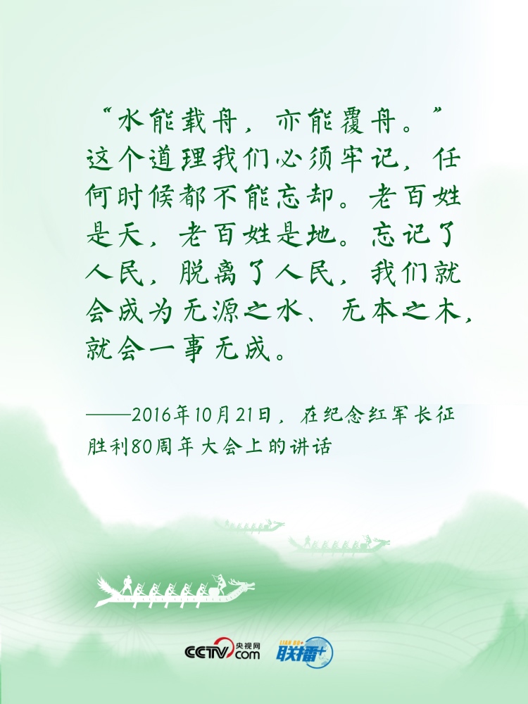 過端午,賽龍舟。龍舟這項(xiàng)傳統(tǒng)運(yùn)動(dòng),象征著中華民族的拼搏、堅(jiān)韌、團(tuán)結(jié),承載著深植在民族基因里的愛國(guó)主義之魂。“舟”字自古以來在中華傳統(tǒng)文化中都有著深刻寓意?!耙浪兄?,忠誠(chéng)為民”“逆水行舟,不進(jìn)則退”......習(xí)近平總書記曾多次以“舟”為喻闡釋思想,寄情言志。央視網(wǎng)《聯(lián)播+》特進(jìn)行梳理,讓我們沿著總書記指引的方向,團(tuán)結(jié)奮進(jìn),砥礪前行?! ?/p>