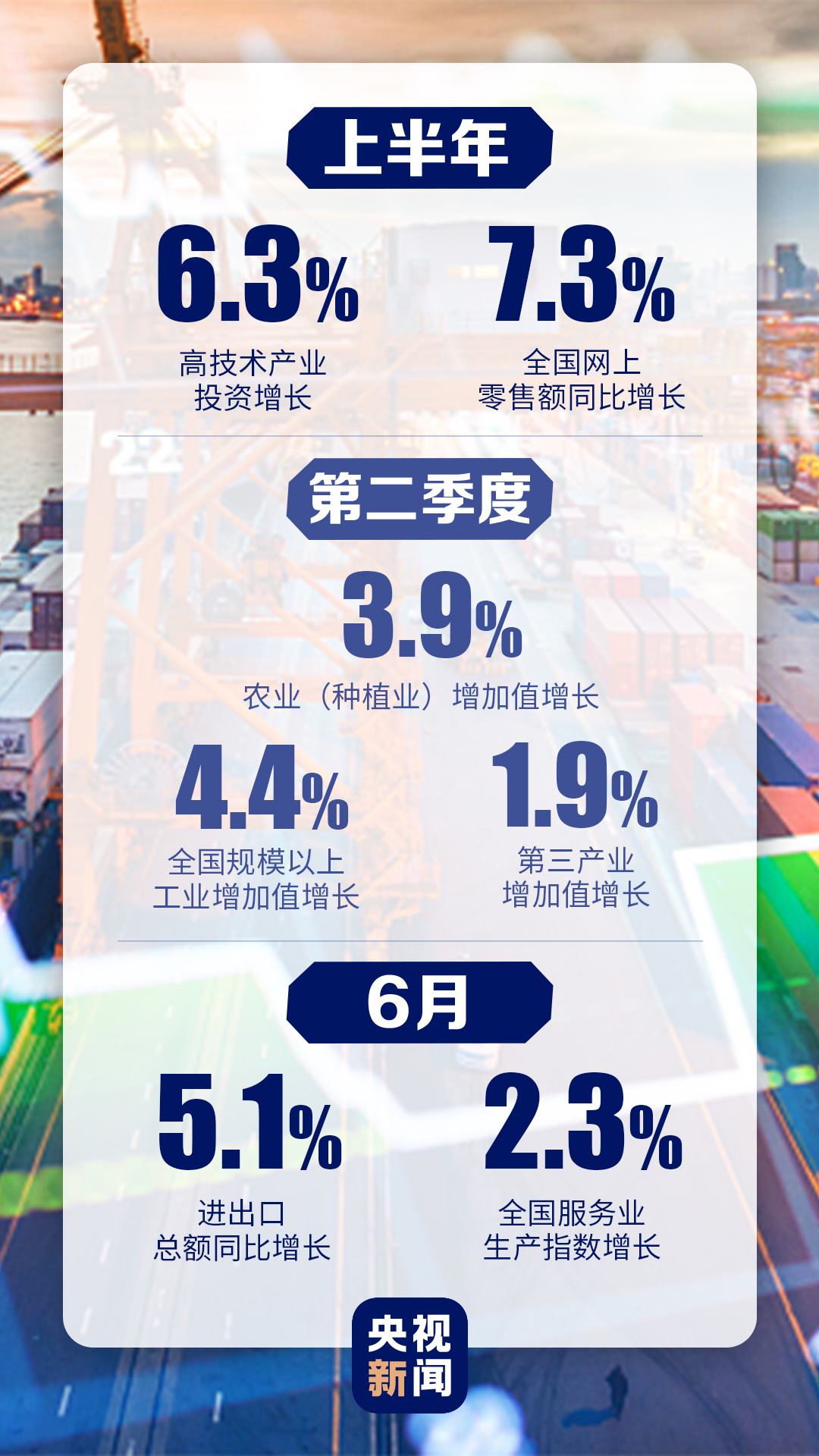 上半年我國經(jīng)濟(jì)先降后升,二季度經(jīng)濟(jì)增長由負(fù)轉(zhuǎn)正,主要指標(biāo)恢復(fù)性增長,經(jīng)濟(jì)運(yùn)行穩(wěn)步復(fù)蘇,基本民生保障有力,市場預(yù)期總體向好,社會(huì)發(fā)展大局穩(wěn)定。