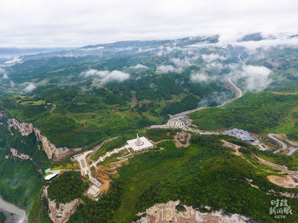 △俯瞰化屋村。“化屋”在彝族語里是“巖壁”的意思,村民早年外出必須從懸崖峭壁邊走,地勢危險(xiǎn)缺少防護(hù)。(總臺(tái)央視記者安楠拍攝)