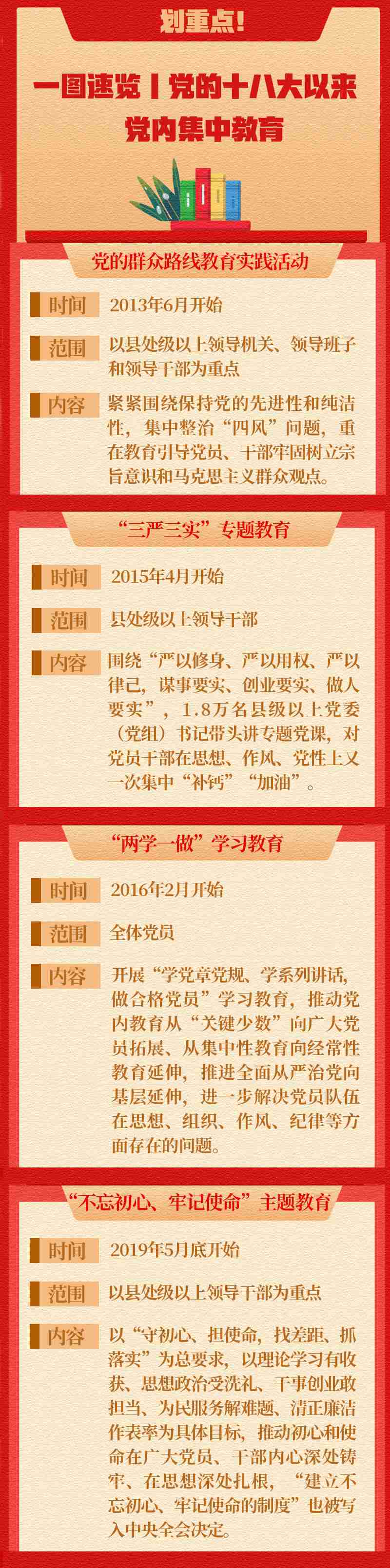 回看黨的十八大以來,從黨的群眾路線教育實(shí)踐活動(dòng)、“三嚴(yán)三實(shí)”專題教育、“兩學(xué)一做”學(xué)習(xí)教育、“不忘初心、牢記使命”主題教育……黨內(nèi)思想教育緊扣黨和國家中心工作展開,在不同時(shí)期有不同的切入角度,貫穿的一條主線就是加強(qiáng)黨的執(zhí)政能力建設(shè)和先進(jìn)性建設(shè)。