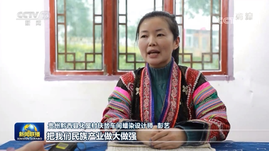 貴州黔西縣化屋村扶貧車間蠟染設(shè)計師彭藝:把我們民族產(chǎn)業(yè)做大做強,讓我們苗族同胞的生活,過得像我們蠟染刺繡一樣精彩。