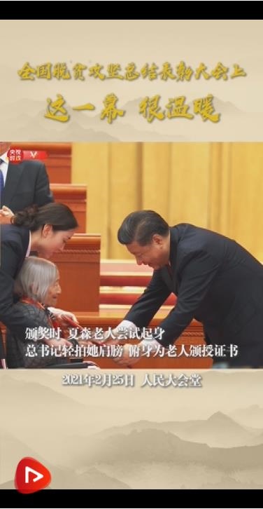 另一位坐輪椅領(lǐng)獎的是98歲高齡的夏森老人,同樣心系貧困地區(qū)教育事業(yè)。她設立的“夏森助學金”已幫助180余名貧困生圓夢大學。頒獎當天有一個細節(jié),夏森老人嘗試從輪椅起身致意,總書記輕拍她的肩膀,俯身為她頒獎?! ?/p>