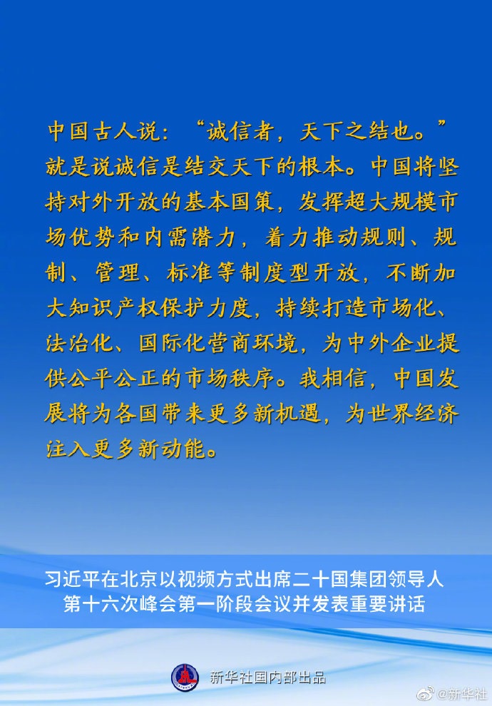 國家主席習(xí)近平10月30日在北京以視頻方式出席二十國集團(tuán)領(lǐng)導(dǎo)人第十六次峰會(huì)第一階段會(huì)議并發(fā)表重要講話。講話有哪些要點(diǎn),一起來看↓