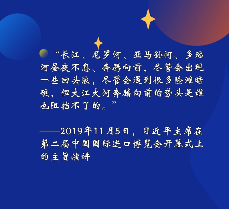 突如其來的新冠肺炎疫情給各國帶來嚴重沖擊,也給世界經(jīng)濟帶來重創(chuàng)。在2020年舉行的第三屆進博會上,習近平主席誠摯的話語,為世界注入強大信心——