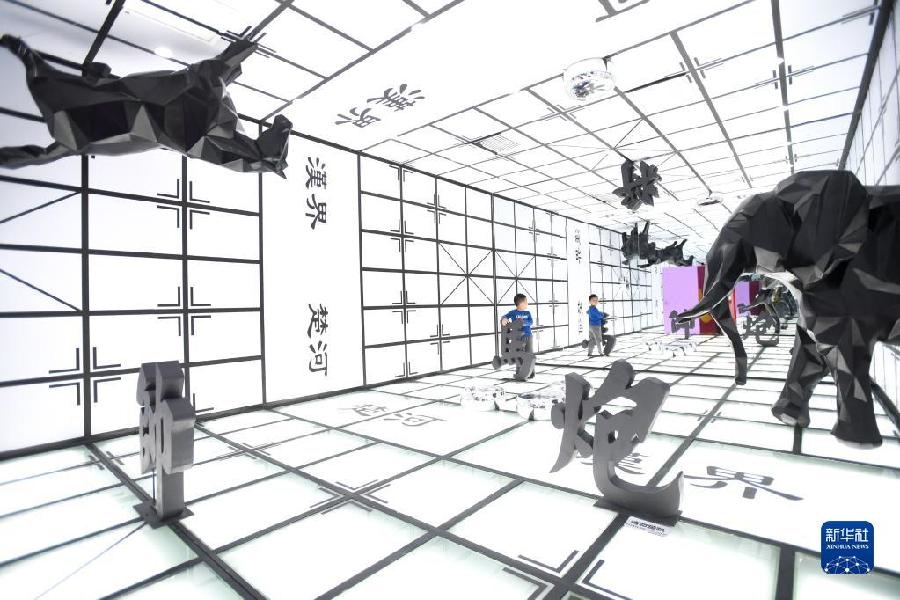 2019年9月21日,小朋友在湖南省長沙市“字在其中”漢字國潮藝術(shù)展上參觀。新華社記者 陳澤國 攝