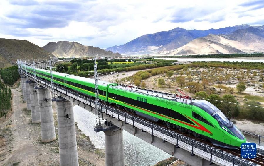 這是試運(yùn)行的復(fù)興號列車行駛在西藏山南市境內(nèi)(6月16日攝)。6月25日,全長435公里、設(shè)計(jì)時(shí)速160公里的拉林鐵路建成通車,西藏首條電氣化鐵路建成,同時(shí)復(fù)興號實(shí)現(xiàn)對31個(gè)省區(qū)市全覆蓋。新華社記者