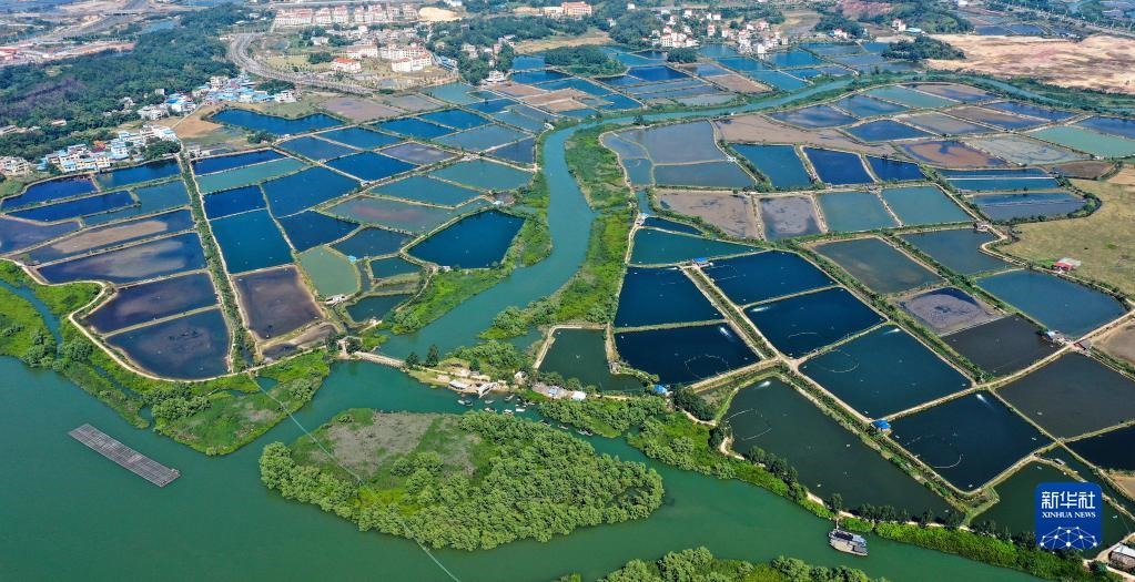 這是廣西欽州市欽南區(qū)沙埠鎮(zhèn)船埠環(huán)村的冬日蝦塘景色(11月25日攝,無人機照片)。新華社記者張愛林攝