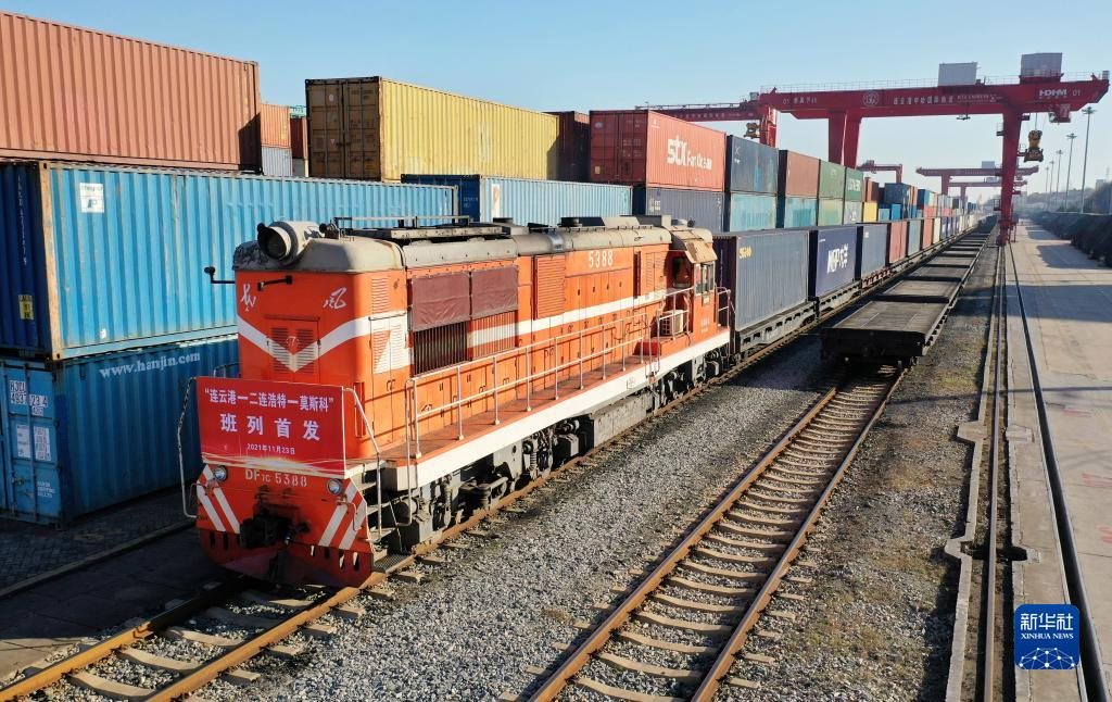 今年11月23日,江蘇連云港。一列裝載著生活用品、家用電器等貨物的中歐班列由此首發(fā)、飛馳而去,將于20天后抵達莫斯科沃爾西諾站。