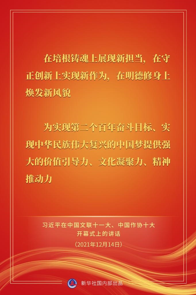 中國文學(xué)藝術(shù)界聯(lián)合會第十一次全國代表大會、中國作家協(xié)會第十次全國代表大會14日上午在北京人民大會堂開幕。習(xí)近平出席大會并發(fā)表重要講話。戳金句,看要點。