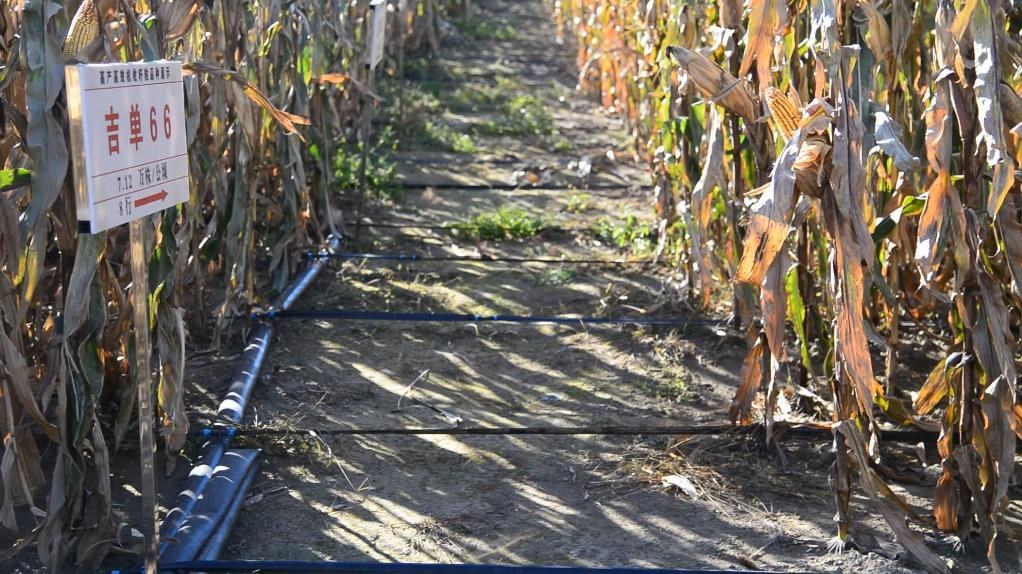 圖為吉林省乾安縣大遐農(nóng)場(chǎng)田間滴灌設(shè)備,每公頃平均增產(chǎn)30%。(新華社記者徐子恒攝)