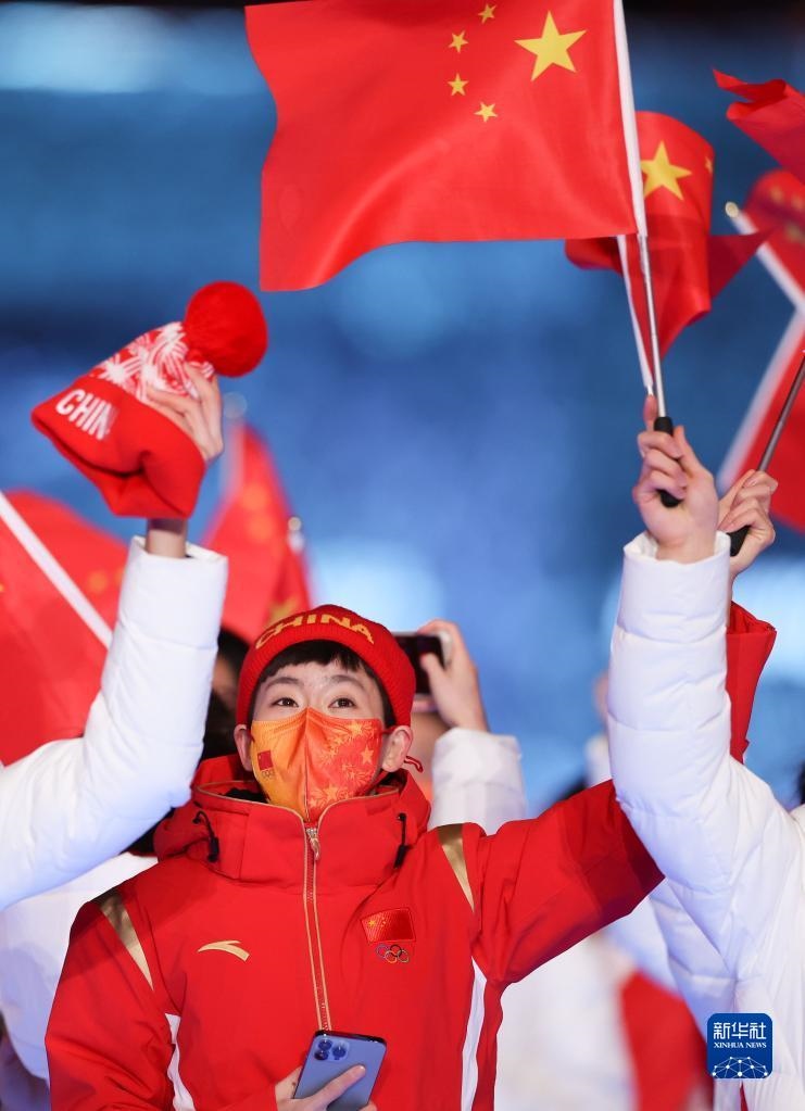 這是中國代表團旗手徐夢桃與高亭宇在閉幕式上入場。