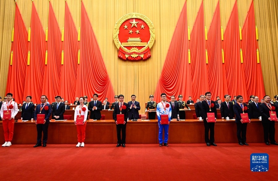 4月8日,北京冬奧會、冬殘奧會總結(jié)表彰大會在北京人民大會堂隆重舉行。習近平等為北京冬奧會、冬殘奧會突出貢獻個人和突出貢獻集體代表頒獎。新華社記者 丁林 攝