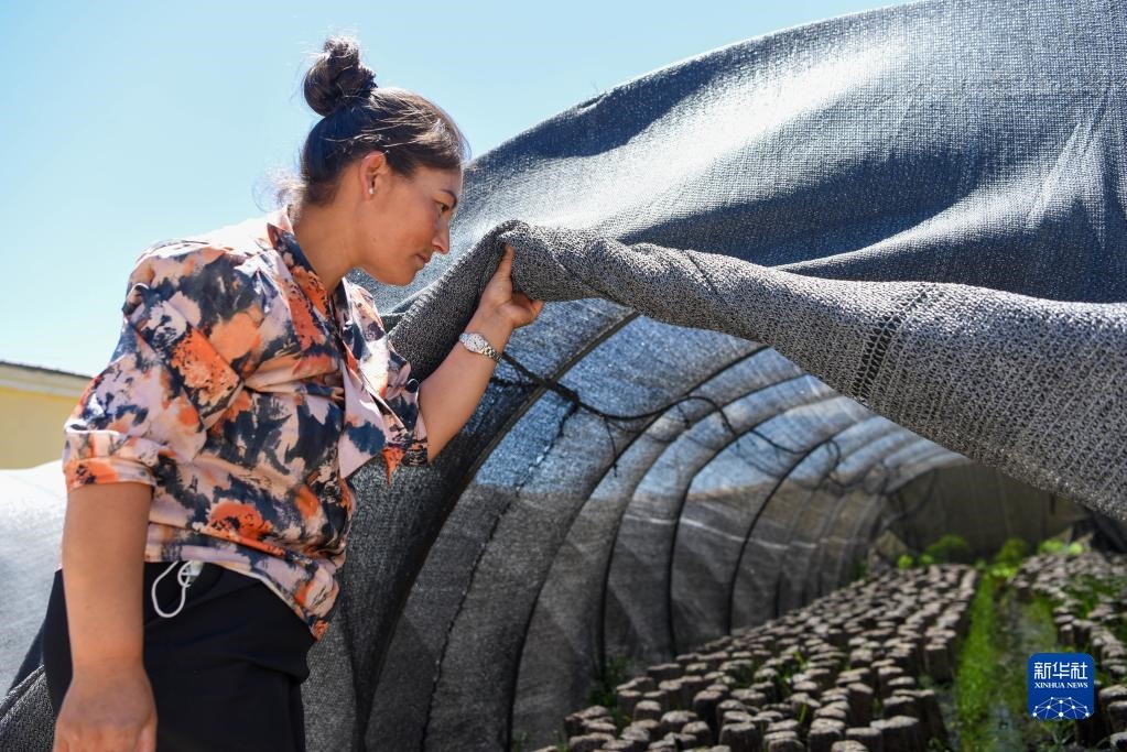 在新疆烏什縣依麻木鎮(zhèn),在新疆維吾爾自治區(qū)黨委組織部、老干部局駐托萬(wàn)克麥蓋提村“訪民情惠民生聚民心”工作隊(duì)的幫助下,不少村民通過(guò)培植木耳增收致富(2022年6月7日攝)。新華社記者