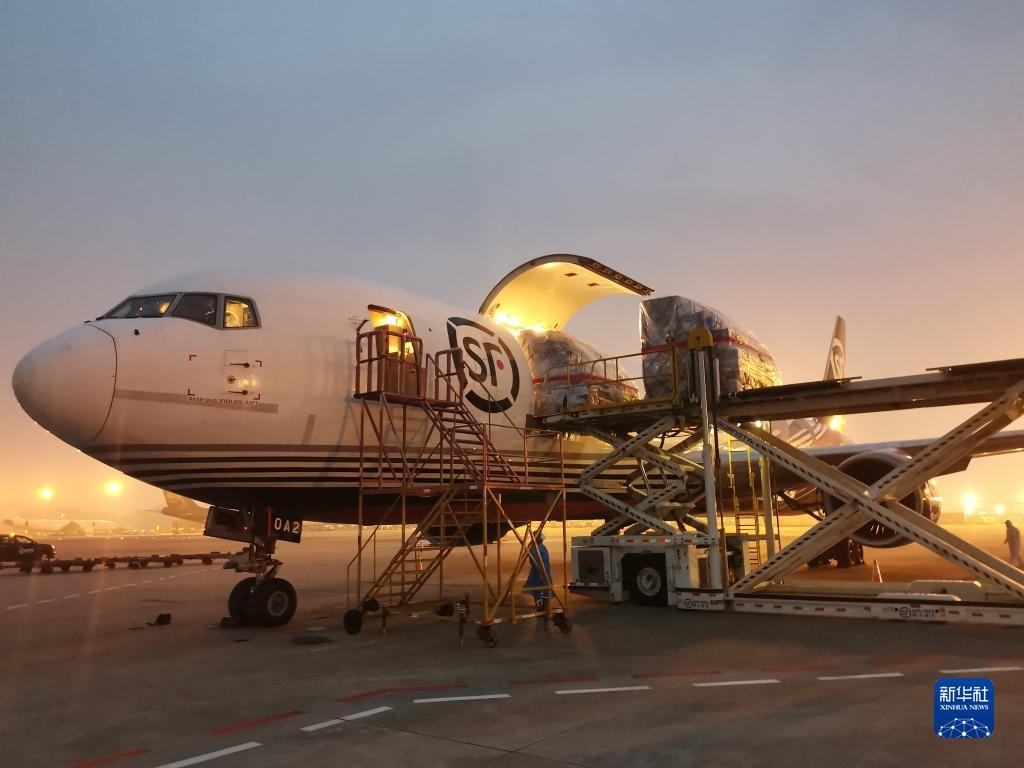 一架載有45噸物資的順豐航空貨運(yùn)包機(jī)從深圳寶安國際機(jī)場(chǎng)飛往香港,深港兩地貨運(yùn)包機(jī)航線正式開通(2022年3月19日攝)。新華社發(fā)