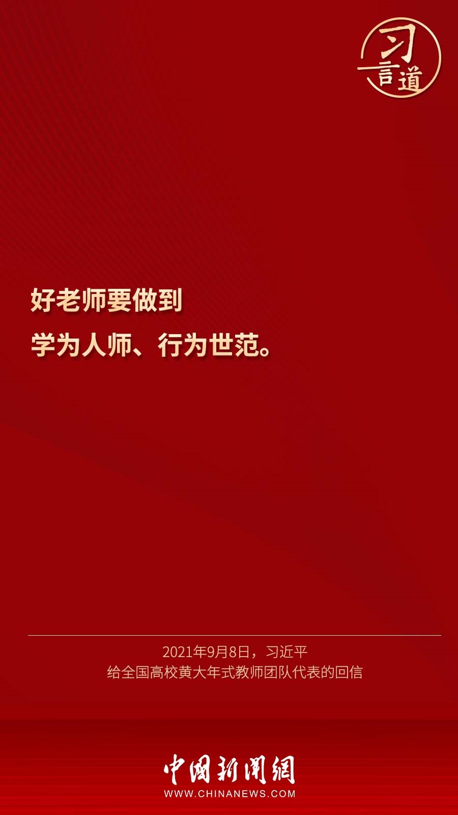 9月7日,習(xí)近平總書記回信勉勵(lì)北京師范大學(xué)“優(yōu)師計(jì)劃”師范生,努力成為黨和人民滿意的“四有”好老師。十八大以來,習(xí)近平多次通過書信的形式,對教師群體寄予殷切期望。