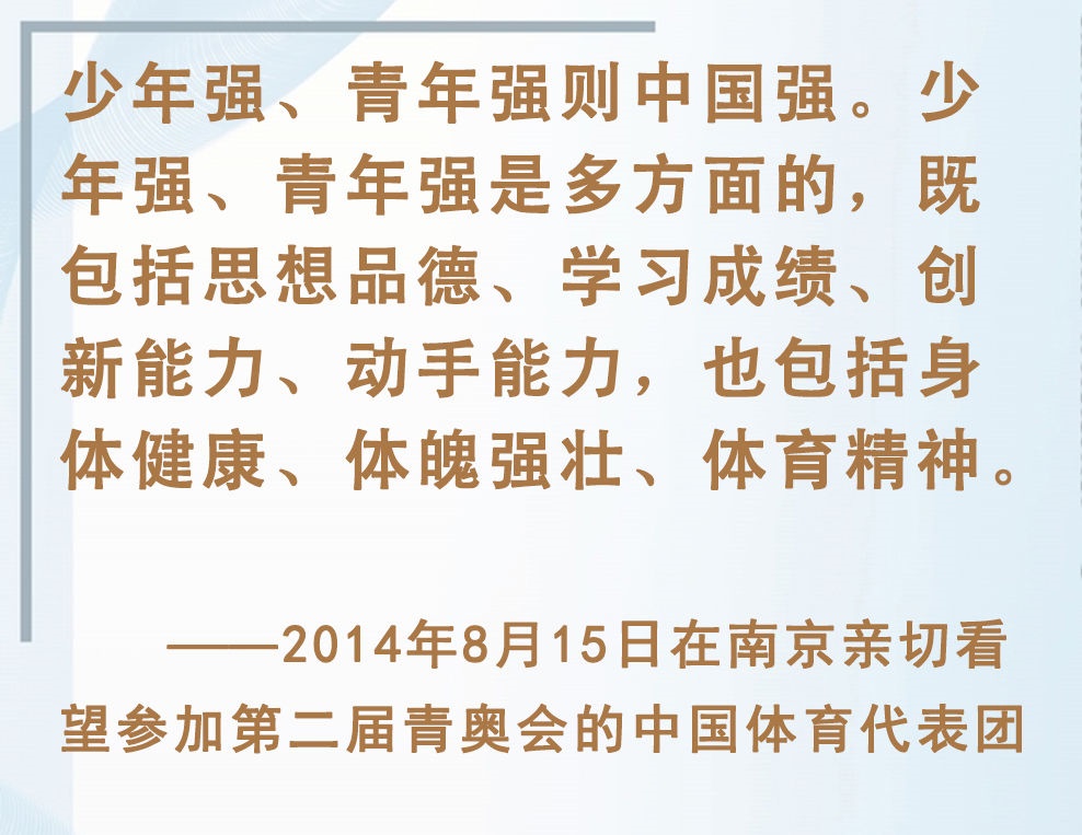 青少年是祖國的未來、民族的希望。強健的體魄是青少年成長成才的重要前提。對加強體育教育,增強青少年體質(zhì),習(xí)近平總書記念茲在茲。